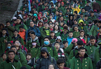 泰山景区游客爆满 市民穿军大衣等待日出