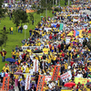 哥伦比亚数千教师街头罢工游行