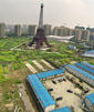 杭州山寨埃菲尔铁塔下香榭丽舍大街与工棚菜地同辉