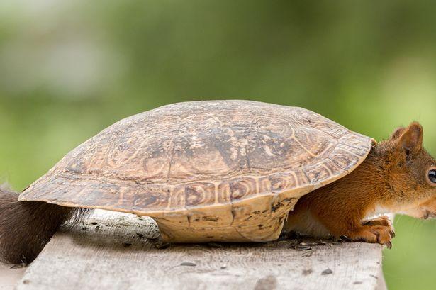 原标题:萌翻!超可爱红松鼠试穿龟甲(图)
