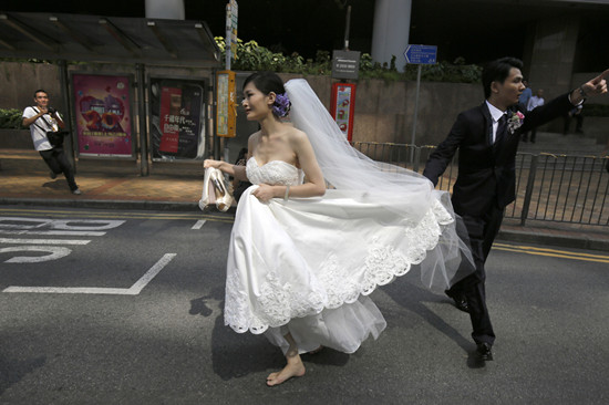 穿越“占中”封路区 香港新娘赤足狂奔赶注册(图)