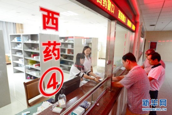 5月31日,市民在河北省沧州市中西医结合医院药房窗口取药。 根据国家发改委等部门《关于印发推进药品价格改革意见的通知》要求, 2015年6月1日起,我国将取消绝大部分药品政府定价,药品实际交易价格主要由市场竞争形成。 新华社记者 朱旭东 摄