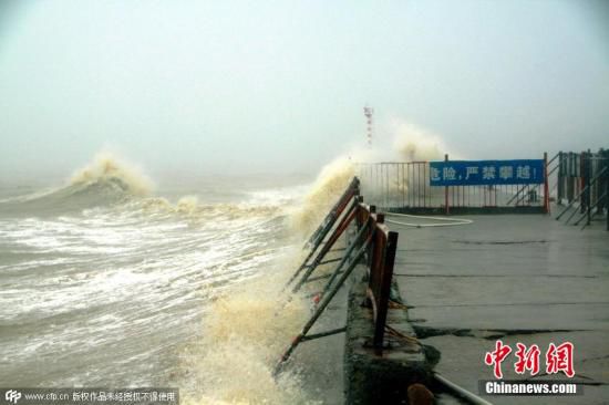2015年07月09日,广东省汕头市,第10号台风“莲花”于12时15分前后在广东陆丰市甲东镇沿海登陆,中心附近最大风力有12级(35米/秒)。受此影响,汕头市风雨交加,海面刮起巨浪。图片来源:CFP视觉中国
