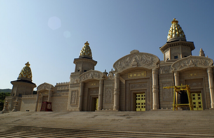 建筑正面采用汉白玉,五座华塔顶部采用黄金打造。