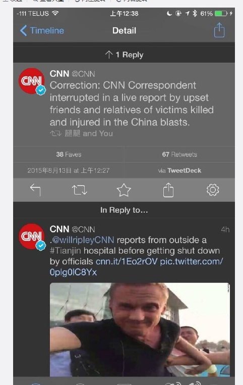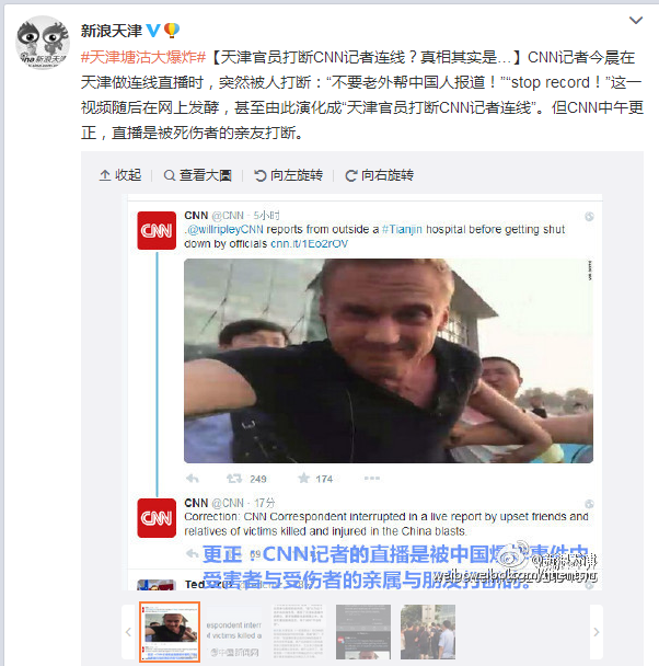 CNN辟谣记者赴天津爆炸现场采访遭围攻 网友:不合时宜