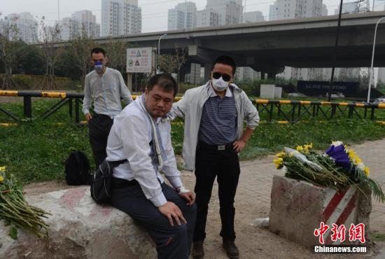 8月18日上午,天津港“8·12”特别重大火灾爆炸事故周边居民小区的居民,自发来到爆炸区警戒线外,点燃蜡烛,敬献鲜花,向遇难者致哀。 中新社发 贾国荣 摄