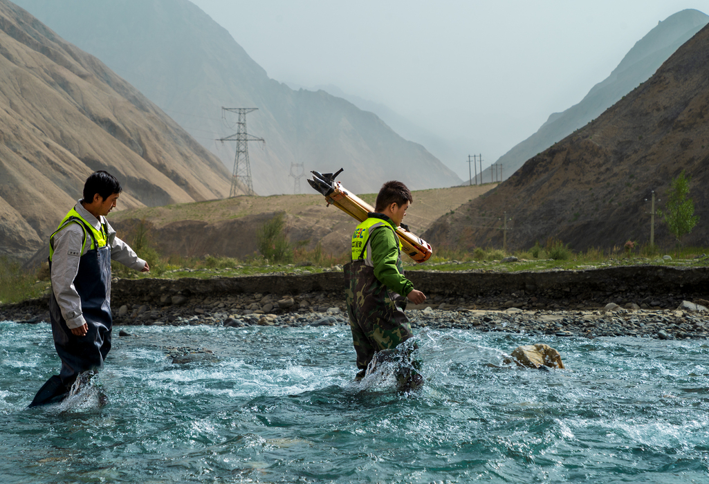 2024年,国家电网巴楚县供电公司员工阿曼古丽·热合曼和艾买提·卡斯木深入红海景区给当地用电经营户宣传用电安全常识。