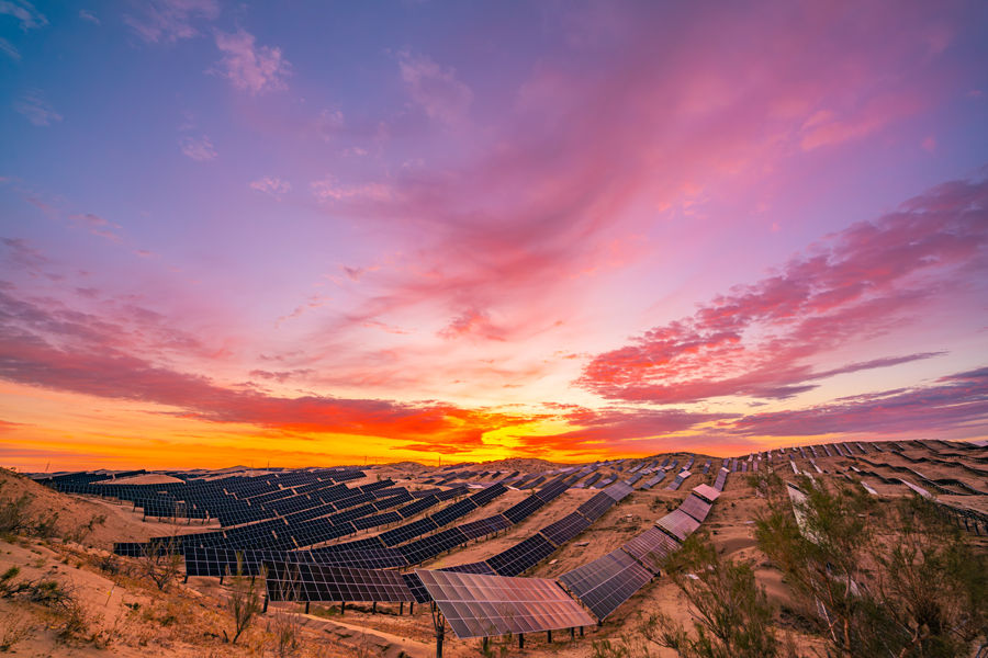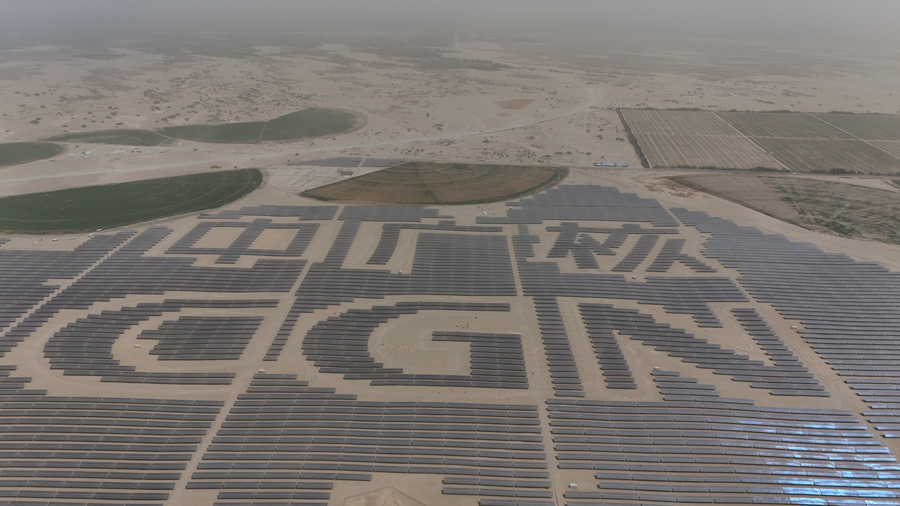 中广核和田洛浦县万亩沙漠治理项目采用农光互补模式,推动新能源与治沙、绿色农业融合发展,为打好河西走廊—塔克拉玛干沙漠边缘阻击战贡献力量。